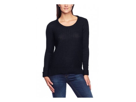 Zeigen Sie sich von Ihrer femininen Seite! Luxus-Strick ganz designerlike. Im attraktiven Patentstrick aus trendstarkem Melangegarn mit Rundhals und aufgesetzte...