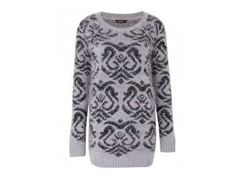 Lässig, cool und unerhört attraktiv - modisch perfekt inszenierter Strickchic mit »Sexy«-Schriftzug aus Glitzerfäden. 3/4-lange Ärmel, weiter Rundhalsausschnitt...