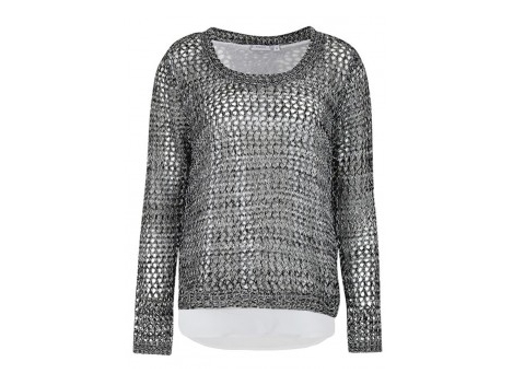 Heine megztinis su dekoratyvinėmis kniedėmis. Priekis suapvalintas, šiek tiek trumpesnis nei nugaroje.Ilgis apie 68 cm. Sudėtis: 50% medvilnė, 50% viskozė.