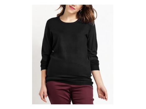 Strick-Chic gefährlich schön. Wirkungsvoller Pullover mit Allover-Ethnomuster. Kontrastfarbene Rippenbündchen am Rundhalsausschnitt, Ärmelsaum und Bund. Sehr fi...