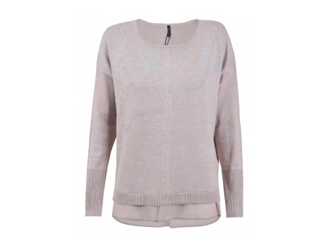 Unbeschwerter Chic! Ein Highlight der Maschen-Szene mit umwerfenden Details. Pullover in Fransen-Optik mit Perlen- und Strassapplikation an der Halsblende. 3/4-...