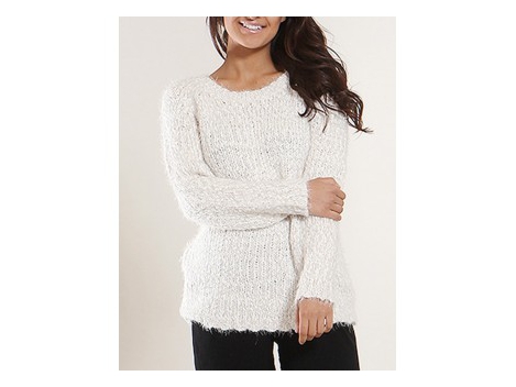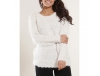 Madingi plonas megztinis moterims su rankovėmis 3/4 ilgio. Apvalia iškirpte. Su priekinio spausdinti raštuotas. Megztinis pritvirtintas prie pilies gale. Atgal...