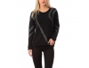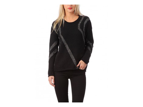 Designstarke Kreation mit luxuriösem Anspruch. Außen: lang geschnittener Pullover in Ecru und Schwarz, mit tiefem V-Ausschnitt, kleinen Aussparungen zwischen Sc...