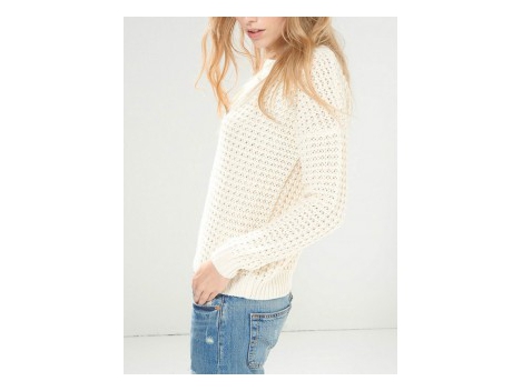 Lässig-Chic mit Vintage-Seele. Eingestrickte Laufmaschen unterstreichen das leger markante Styling. Weiter V-Ausschnitt und lange Raglanärmel mit Rippenstrickbü...