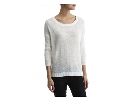 Unbeschwerter Chic! Ein Highlight der Maschen-Szene mit umwerfenden Details. Pullover in Fransen-Optik mit Perlen- und Strassapplikation an der Halsblende. 3/4-...