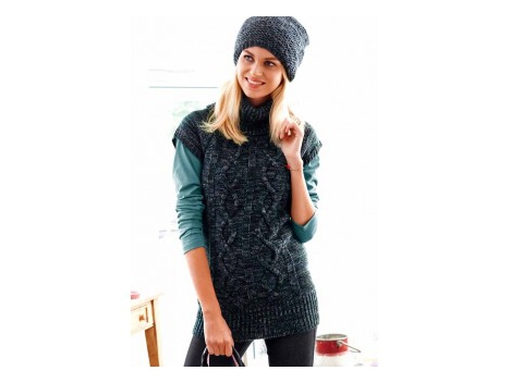 Dabartinis dizaineris stiliaus su skaidriu Ajourstrick ir sumažinti pečių. Pav hugging formos. Ilgis apie 64 cm. Dėvėti labai patogi medžiaga, pagamintas iš 50%...