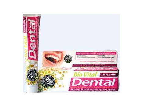 DENTAL Bio Vital Anti-paradontit dantų pasta, 75ml  Dantų pasta be fluorido, saldiklių, parabenų /cheminių konservantų/ natūralių aktyviųjų komponentų tinkajautriems ir skausmingiems dantims. Alijošiaus Bio ekstraktas mažina dantų jautrumą ir užtikrina visapusišką dantenų priežiūrą, Sym relief® kompleksas su bisabololiu ir imbieru pasižymi kompleksišku sutraukiamuoju poveikiu, stabdo mikroorganizmų vystymąsi burnoje, mažina paraudimus, patinimus, dantenų kraujavimą esant gingivitui ir periodontitui. Mėtų Bio ekstraktas užtikrina gaivų kvėpavimą, pasižymi raminančiu, priešuždegiminiu poveikiu, gerina dantenų tonusą. Esantys sudėtyje Bio ekstraktai yra sertifikuoti. Rekomenduojama naudoti ne rečiau negu 2 kartus per dieną, valant dantis tinkamu šepetėliu 2-3 minutes.