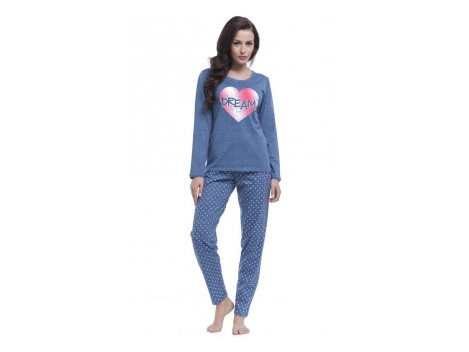Producent odzieży: DobranockaMarka odzieży: DobranockaModel odzieży: PMRodzajOferty: Oferta bieżącaNowość: TAKPłeć kupującego: KobietaSkładnik surowcowy: bawełna 100%,Rodzaj dekoltu: okrągłyOpisProducenta: Wygodne i komfortowe piżamy nie muszą być nudne! Ciekawe wzornictwo i kolorystyka są niewątpliwą zaletą.Świetny komplet składający się z dwóch części – bluzki z długim rękawem oraz długich spodni. Góra z okrągłym dekoltem ozdobiona uroczym sercem. Spodnie w śliczne serduszka. W pasie komfortowa gumka.Piżama wykonana jest z wysokiej jakości, przyjemnej w dotyku bawełnianej dzianiny imitującej jeans.Skład: 100% bawełna.