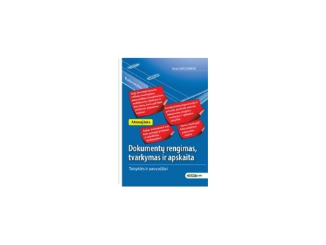 Atnaujinta knyga. Knygoje pateikiamos dokumentų formos ir tekstų pavyzdžiai, parengti pagal naujausias dokumentų rengimo taisykles. Kaip įforminti įmonės veikloje naudojamus automobilius, kompiuterius, mobiliuosius telefonus ir kitą turtą, kuris gali būti priskirtas pajamoms natūra? Nevalstybinių organizacijų ir privačių juridinių asmenų dokumentų rengimo, tvarkymo ir apskaitos taisyklės. Kokie dokumentai turi būti parengti priimant ir atleidžiant darbuotojus? Turtas, kuris gali būti priskirtas pajamoms natūra.
