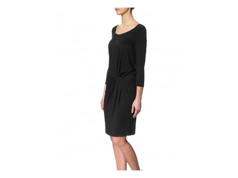 Taima Dress /240/ Prosty krój. Rękaw 3/4. Imitacja kieszeń zakończone skórzanymi wstawkami.