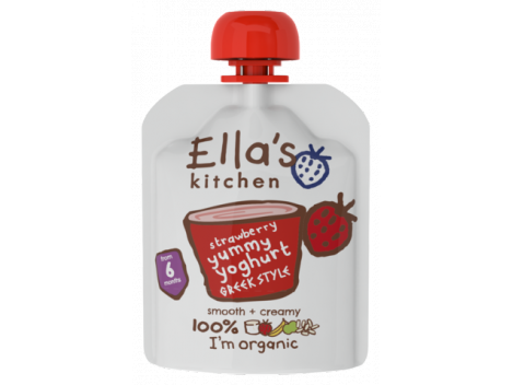 EKOLOGIŠKAS Ella's kitchen JOGURTAS su BRAŠKĖMIS, BANANAIS, OBUOLIAIS, kūdikiams nuo 6 mėn, 90g EKOLOGIŠKAS!Skirta ne jaunesniems kaip 6 mėn. amžiaus kūdikiams. Sudedamosios dalys: VISI INGREDIENTAI EKOLOGIŠKI: graikiško stiliaus jogurtas 37%, braškės 30%, bananai 22%,obuoliai 10%, ryžių krakmolas 1%, citrinos sulčių koncentratas (lašelis), kiti priedai 0%.100g produkto energinė ir maistinė vertė: 370 kJ/88 kcal, riebalų – 3,6 g, iš kurių sočiųjų riebalų rūgščių – 2,3 g, angliavandenių – 11,1 g, iš kurių cukrų – 9,5 g, baltymų – 2,1 g, natris 0,05 g, ląstelienos – 1,5 g.Paruošimas: Išspausti tyrelę į dubenėlį ar tiesiai į šaukštelį. Vyresni vaikučiai gali patys valgyti tiesiai iš pakuotės ją išspaudžiant tiesiai į burnytę. Jei norite šiltos tyrelės, įdėkite pakelį į karštą vandenį arba išspauskite į puodą. Būkite atsargūs, nes maistas gali būti per karštas ir nudeginti. Patikrinti maisto temperatūrą prieš maitinant. NIEKADA nešildyti su pakeliu mikrobangų krosnelėje.Atsargiai! Pakuotės kamšteliu gali paspringti kūdikis, todėl visada jį laikykite kūdikiui nepasiekiamoje vietoje. Jei pakuotė pažeista ar per daug išsipūtusi, tokiu atveju nemaitinkite kūdikio maistu iš tokios pakuotės.Laikyti sausoje ir vėsioje vietoje. Atidarius pakuotę, laikyti šaldytuve, ir suvartoti per 24 valandas. Neužšaldyti. Geriausia iki pabaigos: žr. ant pakuotės.