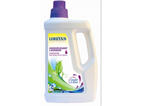 EKOLOGIŠKAS koncentruotas skalbinių minkštiklis levandų kvapo,Lerutan 30 skalbimų 1l Koncentruotas, skalsus, minkština ir švelnina audinius, suteikia gaivų kvapą. Su eteriniu levandų aliejumi. Vienos pakuotės užtenka trisdešimčiai skalbimų. Sudėtis: 5−15 % katijoninių paviršinio aktyviųjų medžiagų (augalinės kilmės), mažiau nei 5 % eterinis levandų aliejus*, limonenas, linolonas (iš eterinių aliejų).* Ekologinės žemdirbystės produktai. Be natrio laurilsulfato, dirbtinių dažiklių ar naftos produktų, sintetinių kvapų, fosfatų, fermentų, EDTA, TAED, NTA. Aktyviosios paviršinio veikimo medžiagos yra augalinės ir neperdirbtos mineralinės kilmės. Atitinka „Nature&Progrès“, „Visagro“ specifikacijas (CERTIPAQ 75008 Paris), Ecocert F32600. Suyra biologiškai, perdirbama pakuotė. Nebandyta su gyvūnais. Naudojimas: įpilkite minkštiklio į tam skirtą skyrelį skalbimo mašinoje ir skalbkite pagal instrukciją.