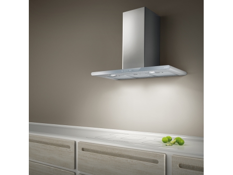 Galingas, įmontuojamas, platus, nerūdijančio plieno su baltu stiklu Elica gartraukis puikus sprendimas minimalistinio stiliaus virtuvėms, tačiau papildomai įsig...
