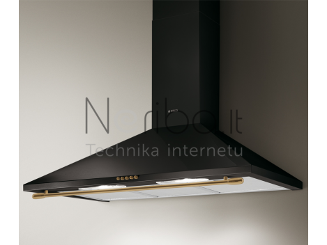 Jei jums artimas retro stilius ar norite pagyvinti modernų virtuvės interjerą rinkitės platų ant sienos kabinamą, juodos spalvos ir klasikinių formų Elica gartraukį su matinio aukso apdaila. Jis atliks visas savo funkcijas, o komplekte esantis anglinis filtras garantuos, kad bus pašalinti nepageidaujami kvapai. Jūsų patogumui metalinis riebalų filtras plaunamas indaplovėje, o halogeninis gartraukio apšvietimas puikiai apšviečia gaminimo zoną.