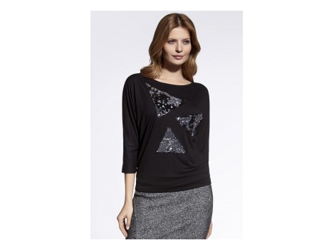 Unerhört reizvolle Kreation mit magischem Blickfang-Faktor. Extravagant: die Schulter-Cuts mit nobler Zierperlen-Stickerei. Rippenstrickbündchen an Ärmeln, Saum...