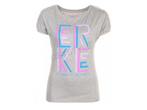 Malou Tee / 813 / pilka / melange / T-marškinėliai su spausdinimo ant priekinio priderinta prie kūno, tampri medžiaga.