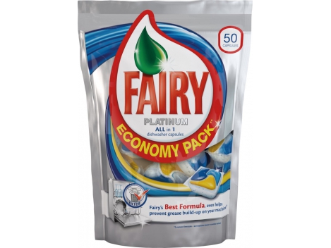 FAIRY All in 1 Platinum daugiafunkcinės indaplovių kapsulės, 50 vnt. Automatinių indaplovių kapsulės. Įdėkite kapsulę į skirstytuvą ir uždarykite. Neišvyniokite ir nepažeiskite kapsulės. Kapsulę lieskite tik sausomis rankomis. Norėdami pasiekti geriasių rezultatų, naudokite skirstytuve, jeigu kapsulė netelpa, uždėkite ją ant įrankių krepšelio viršaus ir pasirinkite programą be išankstinio plovimo. Jūsų indaplovė tūrėtų plauti veiksmingai net jei užsidega skalavimo priemonės ar druskos signalinė lemputė. Įsitikinkite, kad sidabras nesiliečia su nerūdijančiu plienu. Neplaukite trapaus porceliano ar plono krištolo. Puikiai pašalina riebalus, padeda pašalinti riebalus indaplovėje, kruopščiai pašalina dėmes, greitai tirpsta vandenyje, plauna esant žemai temperatūrai, apsauga nuo kalkių nuosėdų, skalavimo priemonės poveikis.Saugoti nuo vaikų. Patekus į akis ar prarijus, nedelsiant kreipkitės į gydytoją.