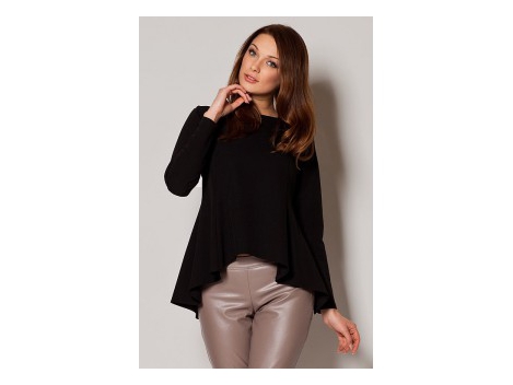 Piękna bluzka idealna zarówno do jeansów jak i eleganckich stylizacji!- długi rękaw- dekolt w łódkę- efektowny dół- tył wydłużony- bluzka zapinana z tyłu na kryty zamekSkład: 65% poliester, 35% wiskoza.