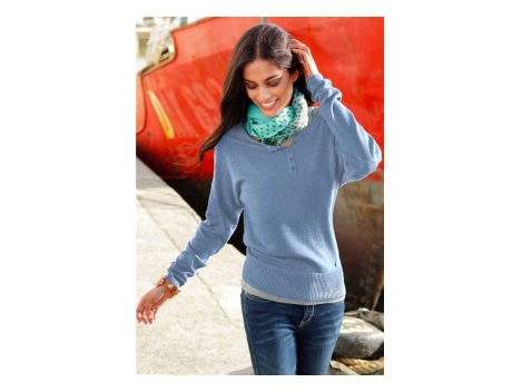 Sportišką išvaizdą į kombinatorinė stiprios spalvos. Nemokama megztinis su trumpu mygtuką Kišenė ir išjungimo rankovėmis. Salė kraštas rankogaliai ir kaklo. Ilgis apytikriai 76 cm. Pav montavimo formos. Minkštas ploni megztiniai kokybės 50% medvilnė / 50% poliesterio.