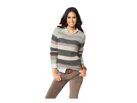 Junger, frecher Style in angesagter Streifenoptik mit wunderschönem Farbverlauf. Rundhalsausschnitt. Rippenstrickbündchen an Ausschnitt, Ärmeln und Saum. Rückenlänge ca. 60 cm. Weiche, tragekomfortable Grobstrickqualität aus 82% Polyacryl/18% Baumwolle.