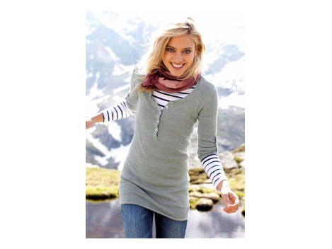 Jauni, Sassy stiliaus - kartu puikiai ir visiškai atnaujinami. Norėdami išspręsti sportišką megzti suknelė su ilgą mygtuką Kišenė, rankovės gali būti susukti ir su mygtuku, traiškyti kraštų galuose. Ilgis apie 82 cm. Pav montavimo formos. Keliamoji Pleasant ploni megztiniai iš 50% medvilnė / 50% akrilo.