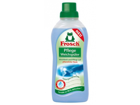 Sauganti audinius skalavimo priemonė (koncentratas) “Frosch” – Ryto gaiva. Naudojama spalvotiems ir baltiems skalbiniams, kad jie maloniai kvepėtų, taptų minkšti. Tinka skalauti medvilnei, vilnai, viskozei, melanžiniams audiniams ir sintetiniam pluoštui (pvz. elastanui). Sudėtyje yra augalinės kilmės aktyviųjų medž., todėl audinio pluoštas natūraliai prižiūrimas ir išsaugomas skalbinių pralaidumas orui. Kadangi jame naudojami geriausios kokybės kvapai, sumažėja odos dirginimo pavojus. Sudėtyje nėra fosfatų formaldehido. Dermatologiniai tyrimai patvirtino, kad odą labai gerai toleruoja šią priemonę.