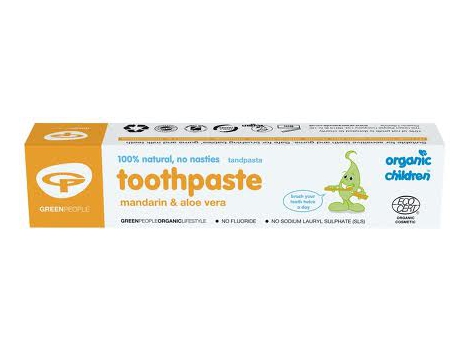 "Organic Children" vaikiška dantų pasta su mandarinais, 50 mlGREEN PEOPLE ekol. vaikiškas pastas saugu naudoti nuo pačių pirmųjų bandymų valytis dantis. Sudėtis 100% natūrali, tad nieko nenutiks netyčia nurijus šios pastos100% natūrali dantų pasta vaikams su ekologiškais ingredientais. Be fluorido ir natrio laurylsulfato (neputoja).100% natūrali dantų pasta vaikams su ekologiškais ingredientais. Su aktyviais ingredientais, padedančiais išsaugoti sveikus dantis ir dantenas. Su organiniais eteriniais aliejais, veikiančiais antibakteriškai ir antiseptiškai. Tinka jautriems dantims ir dantenoms. Alavijas veikia raminančiai, gydančiai. Mandarinų, apelsinų ir miros eteriniai aliejai – antibakteriškai, antiseptiškai.Be stiprių putojančių medžiagų, be fluorido, be dirbtinių saldiklių, dažiklių, kvapiklių bei konservantų. Be chemiškai apdorotos kreidos. Neužteršta aliuminiu iš tūbelės (ji padengta valgoma plėvėle).Sudėtis: kalcio karbonatas (kreida), *alavijas, glicerinas (gautas iš augalų), ksantano derva (kukurūzų cukraus derva), *mandarinų aliejus, *apelsinų aliejus, askorbino rūgštis (vitaminas C), mira, d-limonenas (iš eterinių aliejų).*ekologiškiDidžiojoje Britanijoje pagamintas ir sertifikuotas produktas.