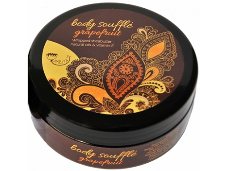 GREIPFRUTŲ kvapo sviestmedžio SUFLĖ kūnui, Amrita, 250 ml Sviestmedžio suflė - nuostabus kūno drėkiklis!Drąsiai pirkite sau ar dovanai - visi išbandę, pamatę, pauostę, ištirpsta ir nori ne tik teptis, bet ir suvalgyti :)Greipfrutų sviestmedžio suflė - energijos pliūpsniui bei žvaliai nuotaikai!Kūno suflė struktūra ypatingai švelni, standžios putos pavidalo - maloni liesti bei įtrinti į odą.Balta švari spalva suteikia nepriekaištingą estetinę formą, o dangiškas kvapas veikia kaip afrodiziakas. Puikiai tinka pasimatymui su savo mylimuoju.Ypatingai efektyvus odos maitinimas!Sudėtis: plaktas sviestmedis, eteriniai aliejai bei sveikatos ir grožio vitaminas E - vienas galingiausių mūsų sąjungininkų kovoje su visa griaunančiais laisvaisiais radikalais!Tyrinėtojai vitaminui E išrinko ir mokslinį pavadinimą „tokoferolis”, sudurdami kelis graikiškus žodžius: tos (vaikų gimdymas) ir phero (gimdyti), taip atspindėdami jo svarbą. Vitaminas E puikiai drėkina odą.Laikyti sausioje ir vėsioje vietoje. Esant aukštai temperatūrai gali suskystėti dėl sudėtyje esančio kokosų aliejaus.Naudojimas: švelniai įmasažuokite į odą, veiks švelniai ir sudrėkins. Geriausiai naudoti iš karto po vonios ar dušo procedūrų, kol oda šilta ir gerai susigeria aliejus. Tinka masažams.---Sviestmedžio sviestas tradiciškai naudojamas odos apsaugai nuo šalčio bei saulės, vėjo, taip pat - kaip veido kremas ar kaukė.Jei po ranka neturite apsauginio kremo nuo saulės, pasiteikite į pagalbą sviestmedžio aliejų - jis savyje turi natūralaus SPF.Idealiai tinka kūno priežiūrai po saulės, jūros, vėjo - sviestmedžio aliejus odą ypatingai stipriai maitina, ji tampa aksominė.Galima naudoti kaip lūpų balzamą bei plaukų kaukę.