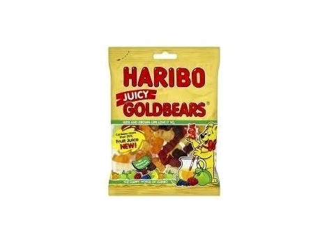 "HARIBO GOLD BEARS" vaisiniai guminukai,150gSeniai pažįstami, gardieji meškiukai-guminukai!   Vaisiniai guminukai su vaisių sultimis (22%). Sudėtis: gliukozės sirupas, vaisių sultys iš koncentratų: aviečių, persikų, kriaušių, juodųjų serbentų, obuolių, žaliųjų citrinų; cukraus; standiklis (želatinas); dekstrozė, citrinos rūgštis; kvapiosios medžiagos; vaisių ir augalų koncentratai: dilgėlių, obuolių, špinatų, kivi, apelsinų, citrinų, juodųjų serbentų, aronijos, vynuogių, šeivamedžio uogų, mango, pasiflorų vaisių; glazūravimo medžiagos: baltas ir geltonas bičių vaškas, karnaubo vaškas; šeivamedžio uogų ekstraktas; aldžiavaisio pupmedžio vaisių ekstraktas; invertuoto cukraus sirupas.