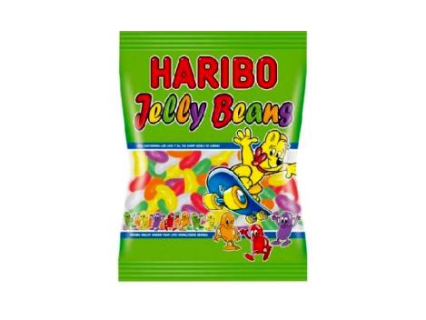 "HARIBO" Jelly Beans vaisiniai guminukai, 160gGardus "HARIBO" pasaulis! Maistinė vertė 100g: energinė vertė 1478kJ/348kcal, baltymų 0,1g, angliavandenių 86,4g, cukrų 42,8g, riebalų 0,2g, sočiųjų riebalų rūgščių 0,1g, skaidulų 0,4g, natrio pėdsakai, druskos pėdsakai.Sudėtis: gliukozės sirupas, cukrus, modifikuotas kukurūzų krakmolas, vanduo, citrinos rūgštis, kvapiosios medžiagos, vaisių ir augalų koncentratai (aronijos, juodųjų serbentų,morkų, šeivamedžio uogų, vynuogių, kinrožės, citrinų, mango, apelsinų, pasiflorų), dažikliai (chlorofilų vario kompleksai), glazūravimo medžiagos (augalinis aliejus, bičių vaškas ir karnaubo vaškas), karamelizuoto cukraus sirupas, invertuoto cukraus sirupas, saldžiavaisio pupmedžio vaisių ekstraktas.
