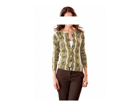 Mandarin megztinis.Ilgomis rankovėmis, rankogaliai su 4 sagomis (mygtukais). Ilgis apie 68 cm. Sudėtis: 60% viskozė, 40% medvilnė. Pečių dalis iš 100% poliester...