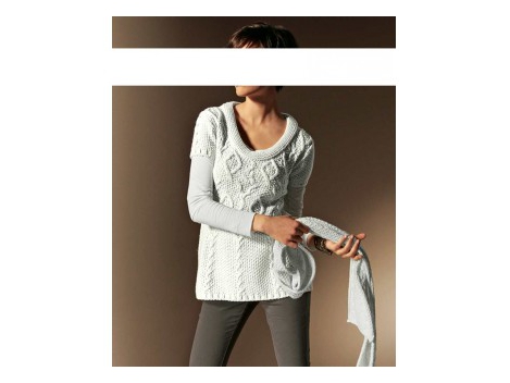 Ilgis apie 60 cm. Sudėtis: 43% poliakrilas, 30% vilna, 25% poliamidas, 2% elastanas.