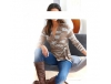 Išskirtinė ir karšto - kontrastingos derinys satino ir bauda megzti yra tikras akių gaudytojas! Rankovės ir apykaklė iš briaunoti megzti. Lengvas lašas pečių ir...