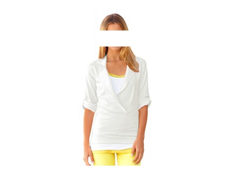 Madingi prabangus kūrimas su elegantiška išsamiai atnaujinimus. Žavinga bauda megzti striukė su gražiais swingers, šiek tiek skaidrus Ajour modelis palei kraštu...
