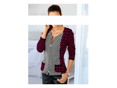 Klasikinis su klase Naujosios stiliaus. Kartu Stiprus megztinis su Allover elegantiškas Houndstooth modelio. Elastiniai rankogaliai ir apačia. Giliai V-kaklo. M...