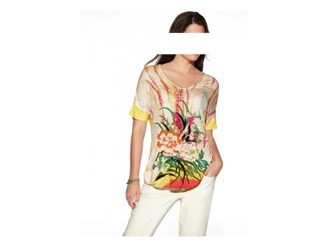 Die pure Extravaganz. Schönes Basic mit dekorativem Chiffoneinsatz seitlich. Mit drei Knöpfen zu schließen. Ärmelenden und Knopfleiste farblich abgesetzt. Größe...