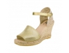 Stilingas madinga išvaizda! Ypatingą krenta į akį yra blizgios metalo išvaizdą. Viršutinė medžiaga iš aukštos kokybės austi tekstilės ir ožkų Nappa odos derinys. Kulno pagamintas iš tekstūruotos austi tekstilės medžiaga. Oda kulkšnies diržas su sagtimi pusėje. Pleištas espadrille padas su optika. Odinis pamušalas, tekstilės vidpadis. Netepanti padas. Platformos aukštis apie 2 cm, pleišto kulnas aukštis maždaug 9 cm. Sudėtyje yra ne tekstilės dalių gyvūninės kilmės produktų.
