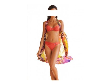 Galutinis paplūdimio palydovas, kuris savo charakterį puikiai prisitaiko. Viršuje yra pusė surinkti asmens ir gerai išsivysčiusios Underwire puodeliai sukurti spalvingas dekoltę. Atgal uždarymas. Slydimo į priekį su pritvirtintomis dekoratyvinių audinių diržo ir ryškus dekoratyvinis žiedas, pagamintas iš metalo. Pilnai pamušalu. Aukščiausios klasės medžiagos mišinys 92% poliamidas / 8% elastano. Pamušalas 80% poliamido / 20% elastano.