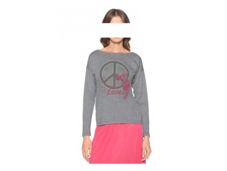 Laisvalaikio stilius De Luxe su madinga detales atnaujinimus. Dabartinis priekinio spausdinti su kontrasto spalvų siuvinėjimas ir cirkonio. Apvalia iškirpte ir ilgomis rankovėmis. Pav-glostantis formos. Ilgis apie 62 cm. Maksimalus drabužiai patogūs kokybės 70% medvilnė / 30% poliesterio.