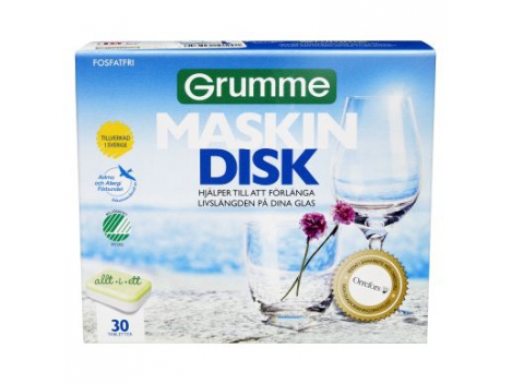 HIPOALERGINĖS kapsulės indaplovėms Grumme , 30vnt. 3in1 – druskos funkcija, skalavimo funkcija, stiklo apsauga! Daugiau jokių kalkių nuosėdų ir maisto likučių ant indų! Grumme hipoalerginėse indaplovių tabletėse nėra fosforo, konservantų bei kvapiųjų medžiagų, todėl tinka naudoti alergiškiems ir jautrią odą turintiems žmonėms bei vaikams. Sudėtyje esantys fermentai veiksmingai pašalina maisto likučius ir riebalus net ir žemesnėje nei 50-55° temperatūroje, todėl nuo šiol galite taupyti energiją naudodamiesi indaplove. Grumme tablečių sudėtyje esanti speciali stiklo apsauga leidžia išvengti kalkių, stiklo korozijos ir prailginti indų ilgaamžiškumą. Indai tampa natūraliai blizgantys it nauji. Tablečių sudėtyje yra skalavimo ir druskos funkcijos, todėl plovimo metu galite ignoruoti įspėjamasias skalavimo priemonės ir druskos signalines lemputes Patarimas: indaplovėje nerekomenduojama plauti medinių ir aliuminių indų, trapaus porceliano ir plono krikštolo. Naudojimas: išimkite 1 tabletę iš folijos, įdėkite į tam skirtą skyrelį ir uždarykite. Jei tabletė netelpa į tam skirtą skyrelį, dėkite ją į stalo įrankių krepšelį ir pasirinkite programą be pirminio plovimo. Norėdami gauti geriausius rezultatus, indus dėkite kaip nurodyta indaplovės intrukcijoje, kad būtų išvengta papildomo dėvėjimosi.Tabletes laikykite sausoje vietoje.