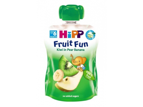 HIPP BIO Kivi, kriaušių, bananų tyrelė, kūdikiams nuo 6mėn, neto masė 90g Tinka kūdikiams nuo 6-to mėn. ir mažiems vaikams.Be glitimo, nepridėta cukrų*.*produkto sudėtyje yra natūralių cukrų Sudedamosios dalys: vaisiai* 100% (67% kriaušių*, 20% bananų*, 13% kivių*), L-askorbo rūgštis.*iš ekologinių ūkių 100 g energinė ir maistinė vertės: 258 kJ/61 kcal, riebalų 0,3 g, kuriuose sočiųjų riebalų rūgščių 0,0 g, angliavandenių 12,6 g, kuriuose cukrų 10,6 g, skaidulinių medžiagų 2,6 g, baltymų 0,7 g, druskos* <0,05 g, natrio <0,02 g, vitamino C 10 mg. *Druskos kiekį nulemia tik natūraliai produkte esantis natris. Vartojimas: tarpiniam maitinimui kaip desertas, arba priedas košei pagardinti. Rekomendacija: maitinti išspaudžiant tyrelę į šaukštelį arba išspausti visą tyrelę į dubenėlį, maitinti šaukšteliu. Neatidarytą pakuotę laikyti kambario temperatūroje. Atidarius laikyti šaldytuve, suvartoti per vieną dieną. Prieš vartojimą įsitikinkite, kad pakuotė nepažeista. Neleiskite vaikui žaisti su pakuote ar kamšteliu. Dėl papildomo maitinimo pasitarkite su gydytoju. Nevartoti mažesniems kaip 4 mėn. kūdikiams.