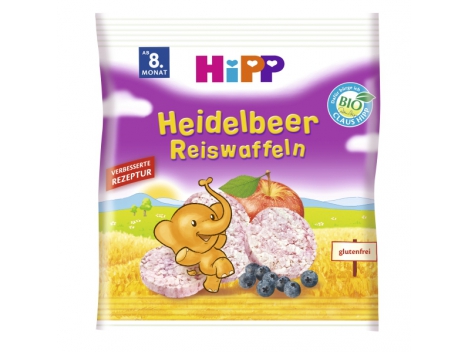 HIPP ekologiški ryžių trapučiai su obuoliais ir mėlynėmis, kūdikiams nuo 8 mėn, grynasis kiekis 30g