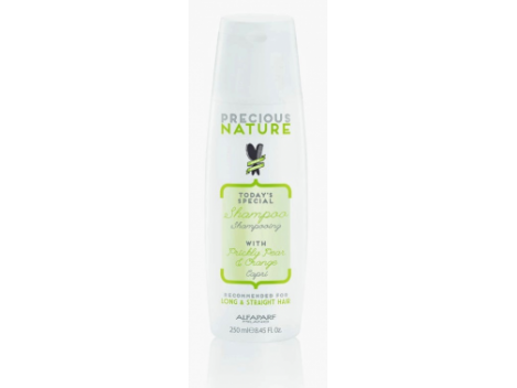 ILGŲ IR TIESIŲ plaukų šamūnas su kaktuso aliejumi ir apelsinų ekstraktu Precious Nature Alfaparf, 250 ml Švelniai plauna, plaukai tampa minkšti ir švelnūs. Sudėtyje esantys kaktuso vaisiaus aliejus ir apelsinų ekstraktas minkština plaukus suteikia akinamo blizgesio. Šampūnas švelniai valo, plaukai nesivelia, tampa lengvai iššukuojami. Sudėtyje nėra sulfatų, parabenų, parafinų, mineralinių aliejų, sintetinių dažiklių, alergenų.Naudojimas: Padengti šlapius plaukus. Masažuoti, kol susidarys putos. Išskalauti. Jei reikia pakartoti.