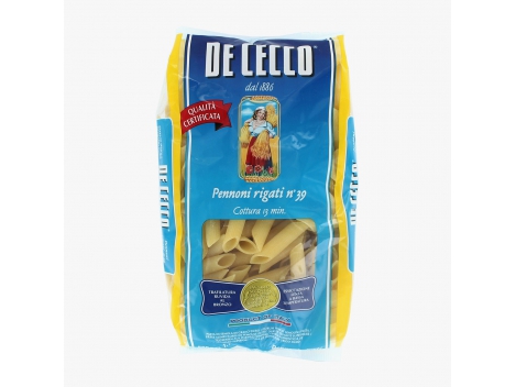 ITALIŠKI Makaronai Pennoni Rigati De Cecco, 500 g De Cecco italų šeimos verslas gyvuoja jau 160 metų. De Cecco gamykloje gaminami aukščiausios kokybės makaronai presuojami bronzinėmis plokštėmis, kad makarono paviršius pasišiauštų – taip geriau prilimpa skaniausi naminiai padažai ir atsiskleidžia skonis.Assorti.lt gurmanų prekių ekspertai rekomenduoja prie De Cecco makaronų rinktis itališkus preciziškai atrinktų pomidorų, rukolos ir baziliko šakelių, sūrio ir kedro riešutų Sacla padažus! • Kruopščiai atrenkami vertingiausi kietieji kviečiai. Smulkintų kviečių grūdų gemalai sudaro bent 67-75% manų kruopų, priklausomai nuo makaronų rūšies, kas suteikia produkcijai ypatingą kviečių aromatą. De Cecco gamybai naudojami kviečiai turi didžiausią įmanomą gliteno koncentraciją (nemažiau 70), tai raktas užtikrinantis kokybę. Glitenas yra svarbiausias proteinas. Jis garantuoja elastingumą ir geresnį paruošimo procesą;• švieži miltai iš nuosavo malūno. Sumalant grūdą tarsi „nurengia“ sluoksnis po sluoksnio , kol išgauna labiausiai vertingą centrinę dalį;• tyras šaltas vanduo iš nuosavo šaltinio šalia gamyklos. Maišant tešlą su šaltu vandeniu(apie 10°C) tenka aukoti daugiau laiko, nei įprastai, bet tai užtikrina natūraliai saldesnį skonį bei vėlesnio paruošimo kokybę;• Paruošta masė yra perleidžiama per bronzines formas, kad būtų grublėtas, akytas paviršius. Ruošiant produktą, tai leidžia padažui bei pagardui prisitvirtinti prie paviršiaus daug geriau. Be abejo, tai prailgina gamybos laiką bei reikalauja daugiau išlaidų, tačiau kokybė yra svarbiausias tikslas.• džiovinimo procesas yra labai lėtas, naudojama temperatūra yra žemesnė nei 65°C. “Pasta” džiovinta aukštoje temperatūroje lengvai atpažįstama: kviečių baltymas yra pažeistas, todėl praranda natūralią geltoną spalvą;• nuolatinė kokybės kontrolė. Šiandien, kaip ir tais laikais, viskas remiasi į meilę makaronams ir nuolatinį tobulumo ieškojimą kiekviename žingsnyje. Sudedamosios dalys: kietųjų kviečių manų kruopos.