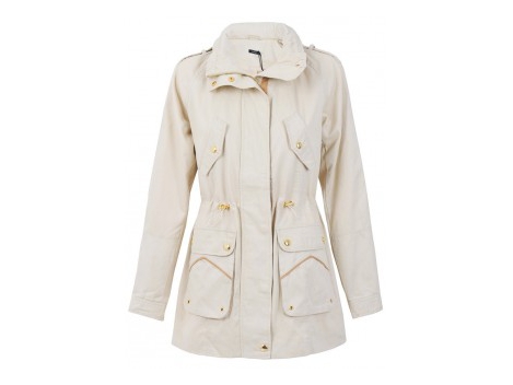 Užsegimas - užtrauktukas ir sagos.Dvi šoninės kišenės su užtrauktukais. Ilgis apie 62 cm. Viršus ir užpildymas: 100% poliesteris. Pamušalas 100% poliamidas.