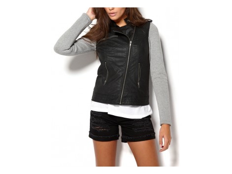 Rockiges Modell für einen extra coolen Auftritt. Stylishe Kurzjacke im Biker-Look. Am Kragen mit Glitzersteinen und Ziernieten besetzt. Asymmetrischer Reißversc...