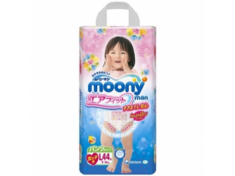 Japoniškos MOONY sauskelnės-kelnaitės mergaitėms, L dydis, 9-14 kg, 44 vnt.