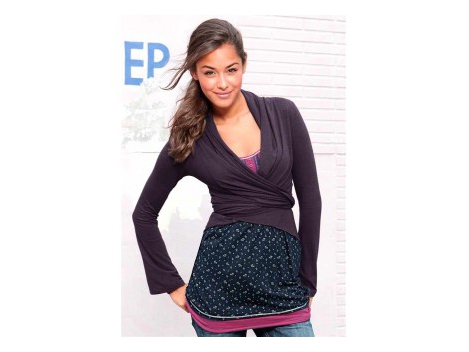 Detalė Verliebtes mėgstamiausia marškinėliai su išpjovimą ant pečių ir cirkonio ant juostų. Šviesos gaubtas. Labai figūra glostantis, šiek tiek ilgiau forma. Il...