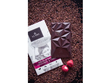 Juodasis šokoladas SU BRAŠKĖMIS, CINAMONU IR KAJENO PIPIRAIS La Naya, 80g Ekologiškas, rankų darbo, gurmaniškas šokoladas, pagamintas Lietuvoje iš aukščiausios kokybės žaliavų.Sodrus, subalansuotas, vaisiais dvelkiantis skonis su aromatingomis, aštriomis natomis. Visi LA NAYA šokoladai ir jų gaminiai ruošiami tik iš kruopšciai atrinktų ingredientų ir gaminami Lietuvoje, ilgametę patirtį šioje srityje sukaupusių profesionalų.Unikalaus dizaino LA NAYA plytelės atkartoja LA NAYA miestelio Gvatemaloje (iš kurio atkeliauja kakavos pupelės šiam šokoladui) kalnus ir slėnius.LA NAYA gėrybės slepiasi prabangiuose šilkiniuose popieriuose, dovaninėse dežutėse ir pakuotėse, puoštose autoriniu Lietuvos dailininkių piešiniu. Sudėtis: Kakavos masė, cukrus, kakavos sviestas, lecitinas, liofilizuotos braškės, Cinamonas, kajeno milteliai.Galimi alergenai: Lecitinas.Maistinė vertė porcijoje (80g): energetinė vertė 440,9kcal, riebalai 32,2g, iš kurių riebalų sotieji 20,3g, angliavandeniai 28,4g, iš kurių cukrus 24,0g, baltymai 5,3g.