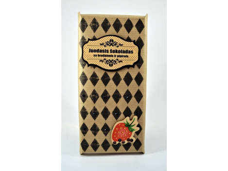 Juodasis šokoladas SU BRAŠKĖMIS R PIPIRAIS, Majai, 100g Ekologiškas juodasis šokoladas 52% su braškių gabalėliais 25 % ir pipirais 0,5 % bei natūraliomis braškių kvapiosiomis medžiagomis. Sudedamosios dalys: žaliavinis cukrus*, kakavos masė*, kakavos sviestas*, šaldytos-džiovintos braškės* (2,5 %), juodieji pipirai (0,5 %), natūrali braškių kvapioji medžiaga burbono vanilė*.Sausųjų kakavos medžiagų juodajame šokolade ne mažiau kaip 52 %. Galimi riešutų, pieno, hlitimo, sojos, migdolų pėdsakai.Žaliavos* iš ekologiškų žemės ūkių sertifikuotų kontrolės punkte DE-001-OKO Vokietijoje.